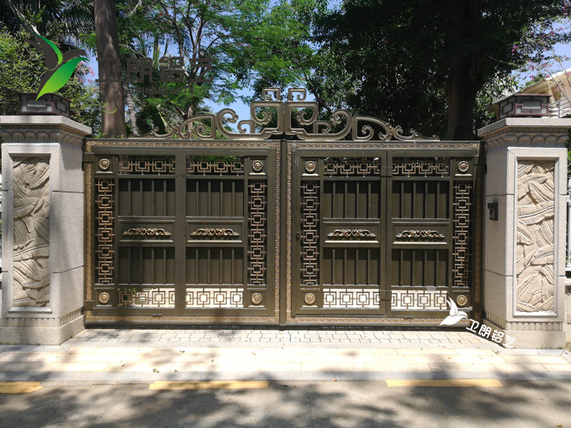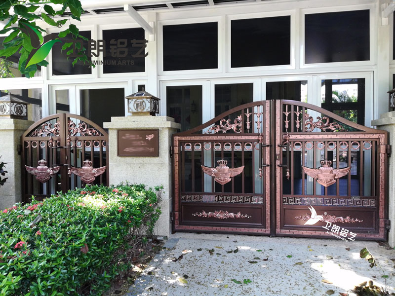 铝合金大门都是铸铝制成,经久耐用,不易生锈,经受风吹雨打依然忠诚的屹立着,就像一件艺术品,精工细作精益求精,装配连接处严丝合缝,如同天衣外形美观,为您创造了个经久不变的典范。