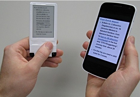 你们可能不知道近场通信(NFC)还可产生电力。最近华盛顿大学、马赛诸塞大学和Intel实验室合作,表演了NFC手机向电子墨水屏传输图片和文字的技术,轻轻一碰就行了,最特别的是你们能在第二屏幕上(电子墨水屏)显示静态但有用的信息,而无需给它电力。