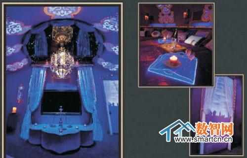 传统的私人视听室装修多以咖啡色、红色、黑色等常规色调为主,对于高贵而浪漫的紫色,家庭装修中主要用于窗帘等配色,在整体的色彩搭配中很少用到。本间视听室的主人从国外留学归来,对于视听室的风格设计有着自己的喜好,希望把阿拉伯风情与普罗旺斯风情结合起来,这只能找专业声学设计公司定制安装。中乐设计师在充分考虑了业主的需求后,大胆设计,便有了这间紫色风情的多功能视听城堡。