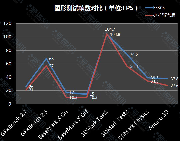 Basemark X 在Basemark X测试中,小米3移动版的On-Screen和Off-Screen成绩几乎一样,都超过了10帧,这成绩也要比I9500高,但是和E330S还有较大差距▼