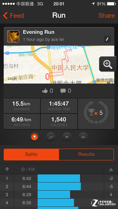 测试软件:Strava Run(针对M7协处理器做了优化)