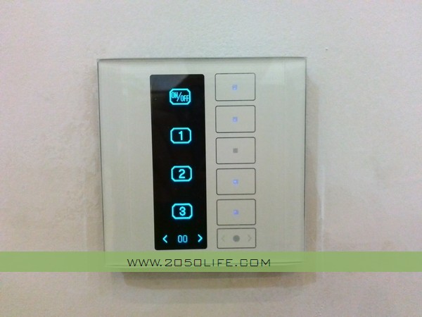 标签智能触摸面板——不可翻页型标签触摸智能开关(安装在过道) 采用多功能液晶面板,作为最常用的用户控制界面,基本可以实现灯光,电器,空调,地暖,窗帘,音乐,安防,门锁等的全宅与局部控制,因为多功能液晶面板,可以设置5层翻页菜单,每页最多可以设置5个触摸按钮,相当于至少25个主要功能按钮,另外,通过一些特定专用界面,可以进入更多的专用设备控制界面,实现更多细节控制功能,例如:背景音乐专用界面,通过一键,可以进入背景音乐专用控制界面,实现指定区域背景音乐的开、关、调量调节、4个音源选择、曲目选择等控制功能;包括电动窗帘及灯光调光的专用界面,分别可以实现电动窗帘的开、关、停控制,以及可调光灯光的开、关、亮度调节控制功能,空调实现制热制冷及低、中、高风档位置调节。同时,可以减少墙面安装太多的面板,既美观,又方便,同时又可以节省控制面板的成本,像一般的智能家居厂家产品,灯光有灯光的开关面板,灯光场景有专用的灯光场景面板,电动窗帘控制有专门的电动窗帘开关,背景音乐有背景音乐专用面板,报警有专用的紧急按钮与布撤防键盘,而且对于灯光较多的房间,单单灯光控制面板就需要安装2到3个,所以,一排面板再加上中央空调及地暖温控面板,至少得有5-8个面板排在一起。