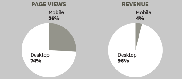 而以美国在线为例,移动终端贡献的流量在总流量中占到了26%,但是却只带来总广告收入的4%。