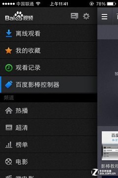 或者是在APP中使用向右滑动手势,在菜单中选择“百度影棒控制器” 在百度视频这款APP中开启遥控器有两个办法:第一个是在首页界面中点击遥控器状的小图标;而另外一种是通过向右滑动的手势,在菜单中选择“百度影棒控制器”就可以了。选择“百度影棒控制器”后,手机会自动搜索百度影棒,并自动连接上百度影棒。