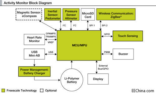 惯性传感器是众多活动监测器的基础。惯性传感器专为检测运动、倾斜、定位、冲击和振动带来的力量转变而设计。活动监测器和自由落体检测器需要迅速反应、高灵敏度、低电流消耗、低压操作并在小型封装内以待机模式运作,对于它们来说,飞思卡尔加速度传感器是理想的解决方案。