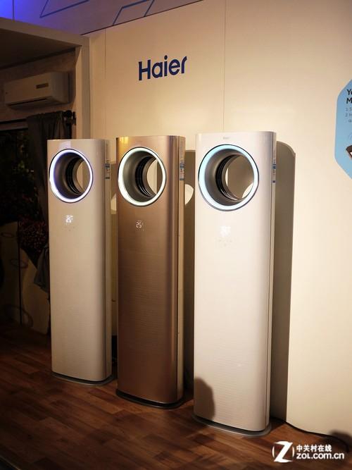 在海尔的展区我们还看到了最新高端空调——天樽系列空调,该空调与国内即时通信厂商——微信合作,用户可通过微信APP遥控空调,在回家之前,就可实现制冷或者制暖。此外,该机放弃了传统空调四四方方的外观,同时采用独有的风洞式设计,外观漂亮且风量更足。