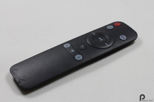 遥控器整体走简约风,按键布局设计接近日常使用的播放器按钮,提供音量加减,节目前进后退返回