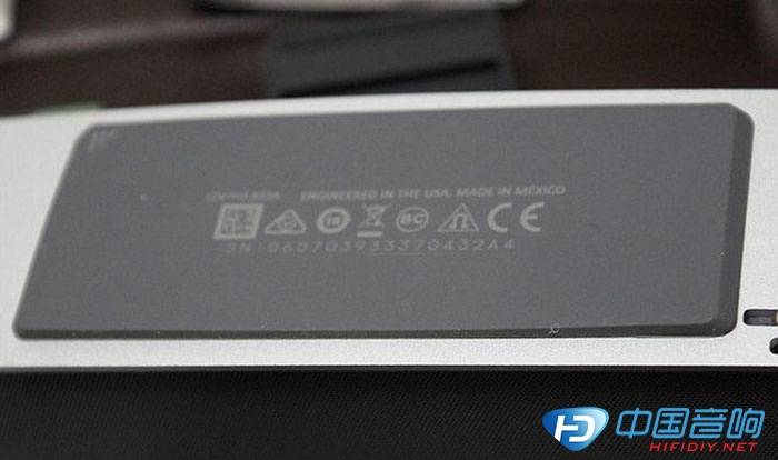 BOSE不愧为国际性的音响制造商,SoundLink mini无论从设计到做工极具大家风范,外观及制作工艺无可挑剔,整体呈长方体,外壳以2mm厚的铝合金环形一体型材切割而成,横截断面呈倒梯形,边角接合以圆角过渡,造型饱满圆润,尺寸为L180.3*H50.8*D58.4 (mm),重约655g,拿在手里颇有些沉甸甸的份量,前后两端面均采用金属镀塑网罩覆盖,前端银灰色网面印有BOSE品牌LOGO字样,顶部上端设有一排控制功能按键,依次为开关,静音,音量,蓝牙,AUX输入键,每个按键都有图标,功能上一目了然,其底端设有一块120*48mm长方形厚约2mm的塑胶垫,防滑耐磨对于接触面有着良好的吸附性,使其不易滑移,在塑胶垫表面印有包括产品序列号,产地,认证标志在内的各类标识,显示规范细致的设计理念,除此之外最为特别的是BOSE还为 SoundLink mini附设了一块可脱卸的底座,使其即可单独摆放,也可与底座合体,方便不同的使用状态与环境,其底座设计独到,其上端有凹槽用以吻合音箱底部的塑胶垫,其底端同样设有两根呈长条形的塑胶脚垫,防震防滑作用效果极好,开大音量也不会震到乱跑,随机附带的还有充电器以及各类印刷资料及说明书,齐全又详细,其中尤以事关安全方面的提示仔细到位,俱都是国际化运作的规范标准.Soundline mini整体给人的印象就是制作具备很高的完成度,一切都那样贴合流畅,通体亮银泛出幽幽光华彰显大气豪华的格调.