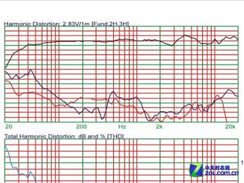 失真度曲线 谐波失真表示声音回放中增加了原信号没有的高次谐波成分而导致的失真;互调失真主要影响到的是音箱播出声音的音调质量;而瞬态失真是由于音箱内部扬声器具有一定的惯性质量存在,盆体的振动无法跟上瞬间变化的电信号的振动而导致的原信号与回放音色之问存在的差异。通常这项指标以百分数来表示,百分比越小说明音箱的失真度越小。普通人耳对5%以内的失真都不是很敏感的,因此选择一只失真度小于0.5%的音箱就比较适用了。