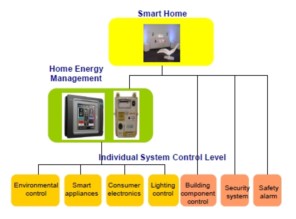 •子系统包括::环境控制(Environmental control system)、智能家电(Smart appliances)、消费电子(Consumer electronics)、照明(Lighting Control)、建筑组件(Building component control),安防系统(Security System) 和安全系统(Safety alarm)。