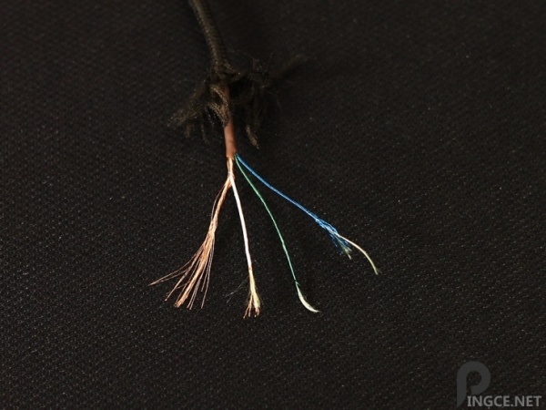 根据官方宣传从耳塞的线控部分网上使用了TPE表层,而线控往下部分,则采用了凯芙拉纤维。这里有必要和大家说明下,所谓的凯夫拉纤维并不是指耳塞外面的那增蛇皮包线,而是耳塞内部铜线添加的一种缠绕线,如下图铜丝所缠绕的白色[url=]线缆[/url]就是凯芙拉纤维。