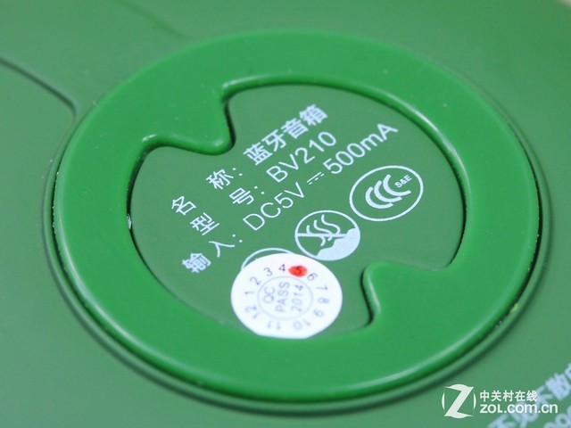 不见不散BV210蓝牙音响金属网罩跟背部橡胶垫 这款蓝牙音响的顶部采用了金属网罩打造,细密的网眼对于单元起到了很好的保护作用,中间带有不见不散的logo,看起来非常的精致跟时尚。这款蓝牙音响的背部设计跟之前的BV200有着共同的特点,那就是在圆润的金属当中加入了柔软的抓地力良好的橡胶脚垫,这是为了保证用户在居家的环境当中更好的使用,摆放起来不会有滑动的情况产生。