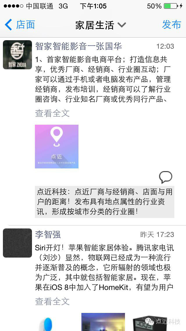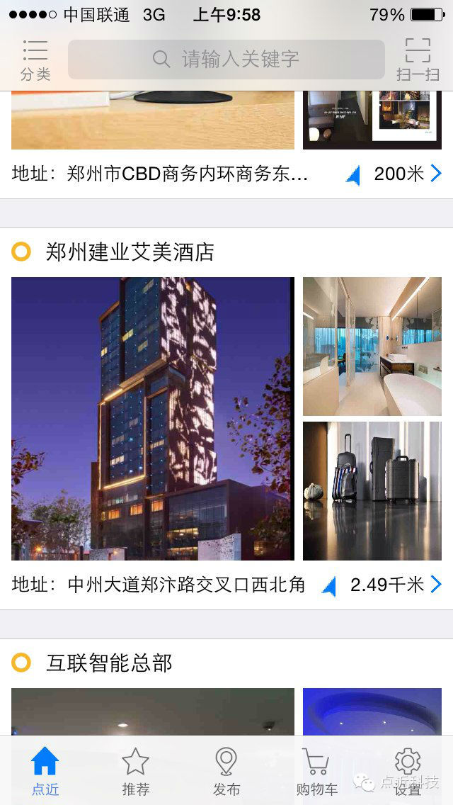 首家智能影音电商平台! 我们共同致力于打造信息与资源共享的平台,提供优秀厂商、经销商、行业圈互动;努力为优秀的同行带来更多价值!初期功能简介:厂家可以通过手机或者电脑发布产品,管理经销商,发布培训,经销商可以了解行业圈咨询、行业知名厂商或优秀同行产品、活动的查询、申请成为厂家经销商、查询培训、通过手机以经销商价格进行订货!添加自己的店面,发布自己经营的产品,更直观的展示产品与案例、易于传递,简化经营管理,形成简单可复制的市场开发模式创新,提升本地市场就近服务的店面竞争力。为近距离用户提供购买、店面交易或送货上门的相关服务! 注册、使用与权限: 1、注册用户后,关闭软件重新打开!可添加店面,在店面所在位置添加店面,修改店面内容可以在其他位置!2、添加店面后向点近科技申请店面认证,出现红色标注!可添加产品至推荐列表,请添加美观的店面图片。3、添加产品的店面,默认遵循点近科技VIP通卡用户享受VIP价格!4、添加产品需要选择销售店面,销售店面可选择多家销售本产品的店面。5、添加完产品,如有人下单,可以在店面订单里与客户取得联系,确认订单并提供相关服务;如送货上门、店面交易、预约订购及送货服务等。6、可以推荐身边的朋友共享软件,发布其经营的产品;让更多人看到你从事的行业及经营的产品。7、发帖具有地点属性,后期会自动按距离显示行业圈发布的帖子!