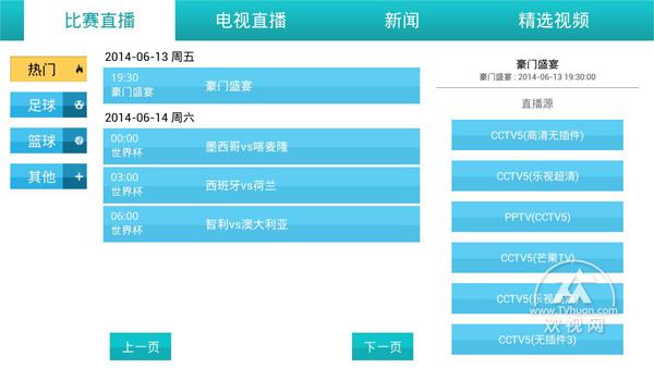 一款集足球、篮球及其他赛事的体育类应用,包括比赛时间表、同步电视直播、实时新闻以及精选视频四个大分类。
