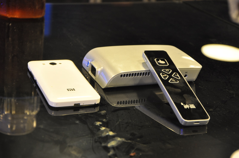 设备厂商做硬件许能信手拈来,其实事实也并不是这样。神画投影的体积是142*88*28mm,麦浩晃说他们要把一枚全自动调焦的镜头塞到这么小的体积里,设计和生产工艺的要求很高。最后我们看到神画的实体机器确实也很漂亮。