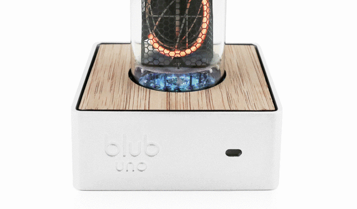 Blub Uno采用USB供电,主体由辉光管(Nixie tube)制成,这是一种类似LCD灯的冷阴极管。