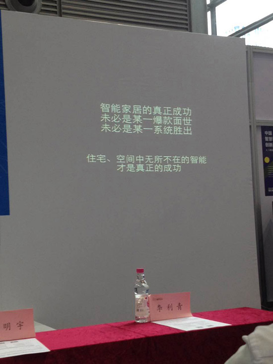 中国智能家居产业联盟秘书长周军发表演讲,他提到,中国的企业都在向互联网+靠近,同时他也表示很看好家庭背景音乐市场,要想做出好音质的音乐效果是很难的。