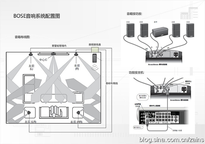 BOSE音箱系统配置图:5.1系统音箱线需要提前预埋.