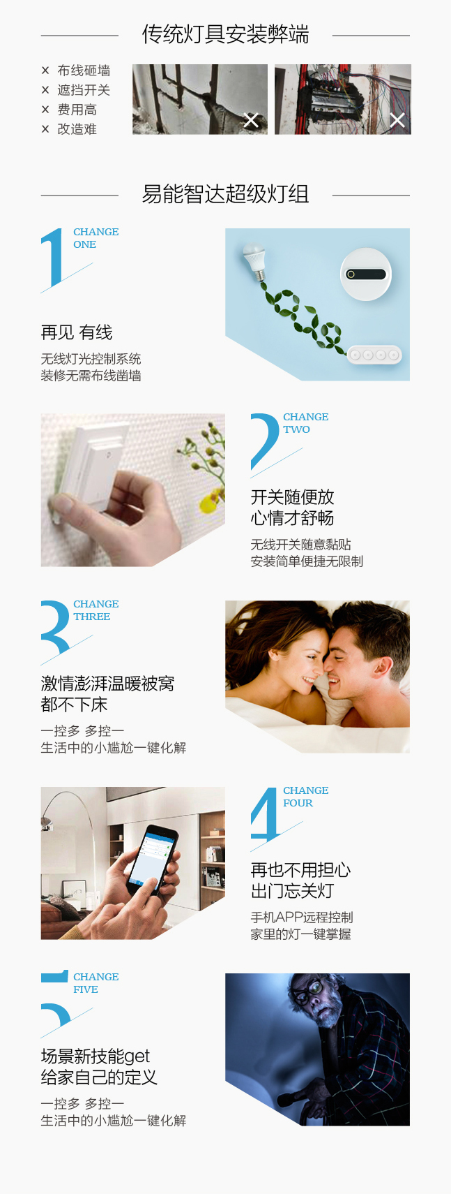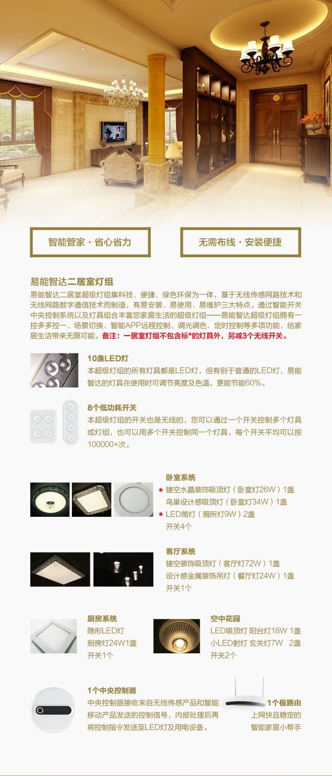 真正的智能照明生活,由易能智达超级灯组惊喜开启!易能智达超级灯组已登陆京东众筹,带来为期45天的智能之旅。分为一居室官方标配版和二居室官方标配版的超级灯组安装时无需布线、砸墙,手机APP的智能配置简单易使用,还集场景、定时、无极变色等功能于一身,快把家点亮~ 京东众筹页面-01.jpg 京东众筹页面-02.jpg 京东众筹页面-03.jpg 京东众筹页面-04.jpg 京东众筹页面-05.jpg 京东众筹页面-06.jpg 京东众筹页面-07.jpg 京东众筹页面-08.jpg 京东众筹页面-09.jpg 京东众筹页面-10.jpg 京东众筹页面-11.jpg 京东众筹页面-12.jpg