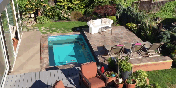 如果你嫌后花园的面积太小,直接改为草地和泳池双用。给泳池装个盖子,平时在盖子上喝茶会友,偶尔也推开盖子跃进泳池里游泳一番。