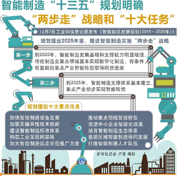 智能制造“十三五”规划发布 明确“两步走”战略和“十大任务”
