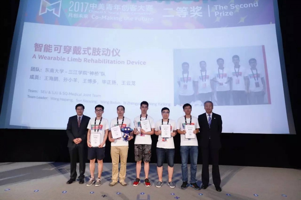 获得大赛三等奖的共6个项目,分别是西安赛区的“触觉反馈手套”和“子母型多功能水下机器人”,美国赛区的“来自普渡的神奇手套”、上海赛区的“桌面级宠物植物机器人”、天津赛区的“智能假肢”和温州赛区的“一键式智能地漏”团队。来自温州赛区的“多功能智能下肢康复仪”项目获得了本次大赛的最佳人气奖。