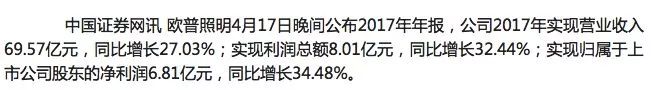折合人民币约47.8亿元,可以说跟欧普是一个量级的。欧普2017年的情况如下: